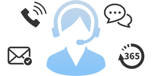 365日対応のカスタマーサービスで、利用中の不安やトラブルをいつでもサポート!チャット・メール・電話で問合せが可能で、困ったときも安心。スムーズなご利用のため迅速に対応します。