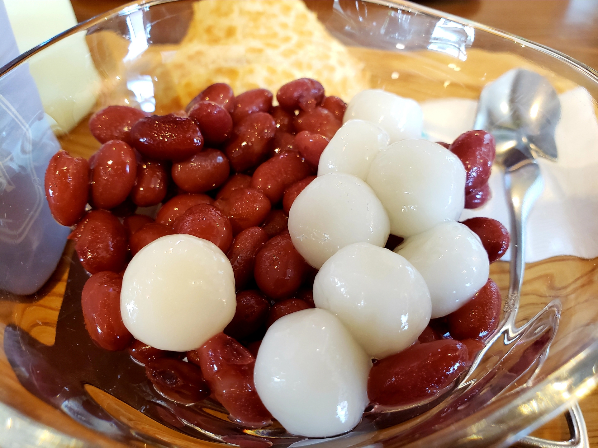 定番の「ちんすこう」も外せません。各店の味の違いに注目です。暑い日には「ぜんざい」もおすすめ。大きな豆と氷の爽やかさが絶妙。