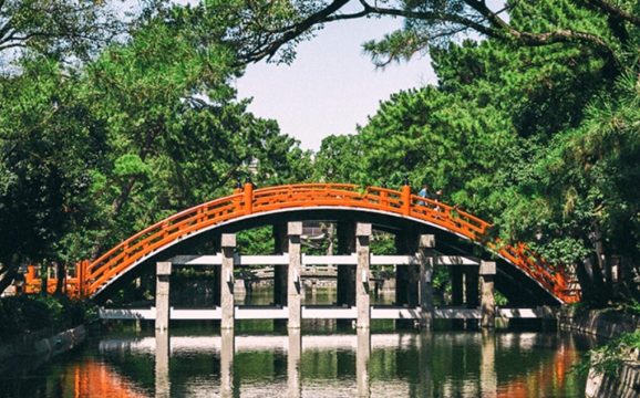 シンボルである、美しい曲線を描く朱塗りの太鼓橋は、写真撮影にもぴったりです。