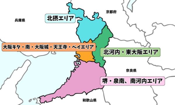 北摂エリアは、吹田市・高槻市・茨木市・摂津市・島本町・豊中市・池田市・箕面市・能勢町・豊能町からなる大阪北西部から東部に連なるエリアです。