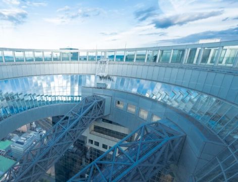 梅田スカイビル 空中庭園展望台は、JR大阪駅から徒歩約7分の場所にある、地上40階建ての連結超高層ビルです。