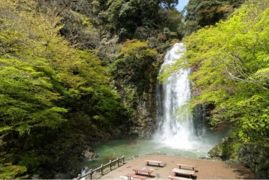 箕面滝は「日本の滝百選」にも選ばれた落差33mある大滝で、迫力のある美しい風景を楽しめます。